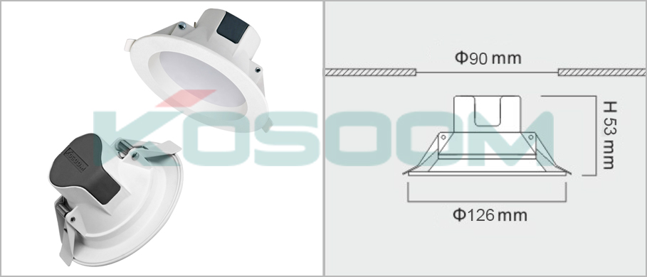 - Âm trần smart 9w có kích thước D126*H53mm, kích thước khoét lỗ là D90-110mm.