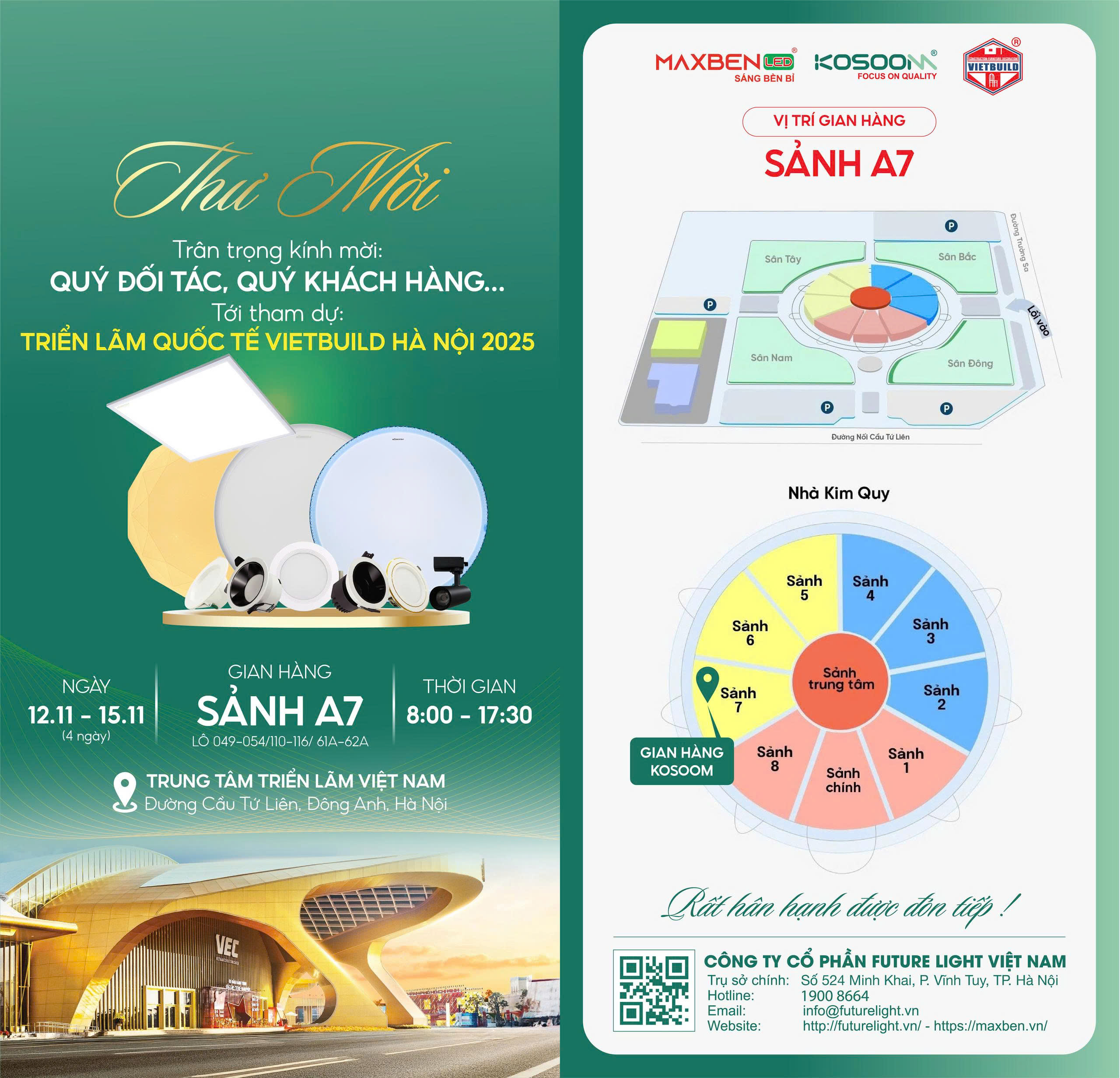 Chúng tôi trân trọng kính mời Quý đại lý, Nhà phân phối, Kỹ sư, Chủ thầu đến tham quan gian hàng Kosoom LED tại Vietbuild Hà Nội 2025. Nơi trải nghiệm không gian ánh sáng chuyên nghiệp, hiện đại cho mọi công trình.